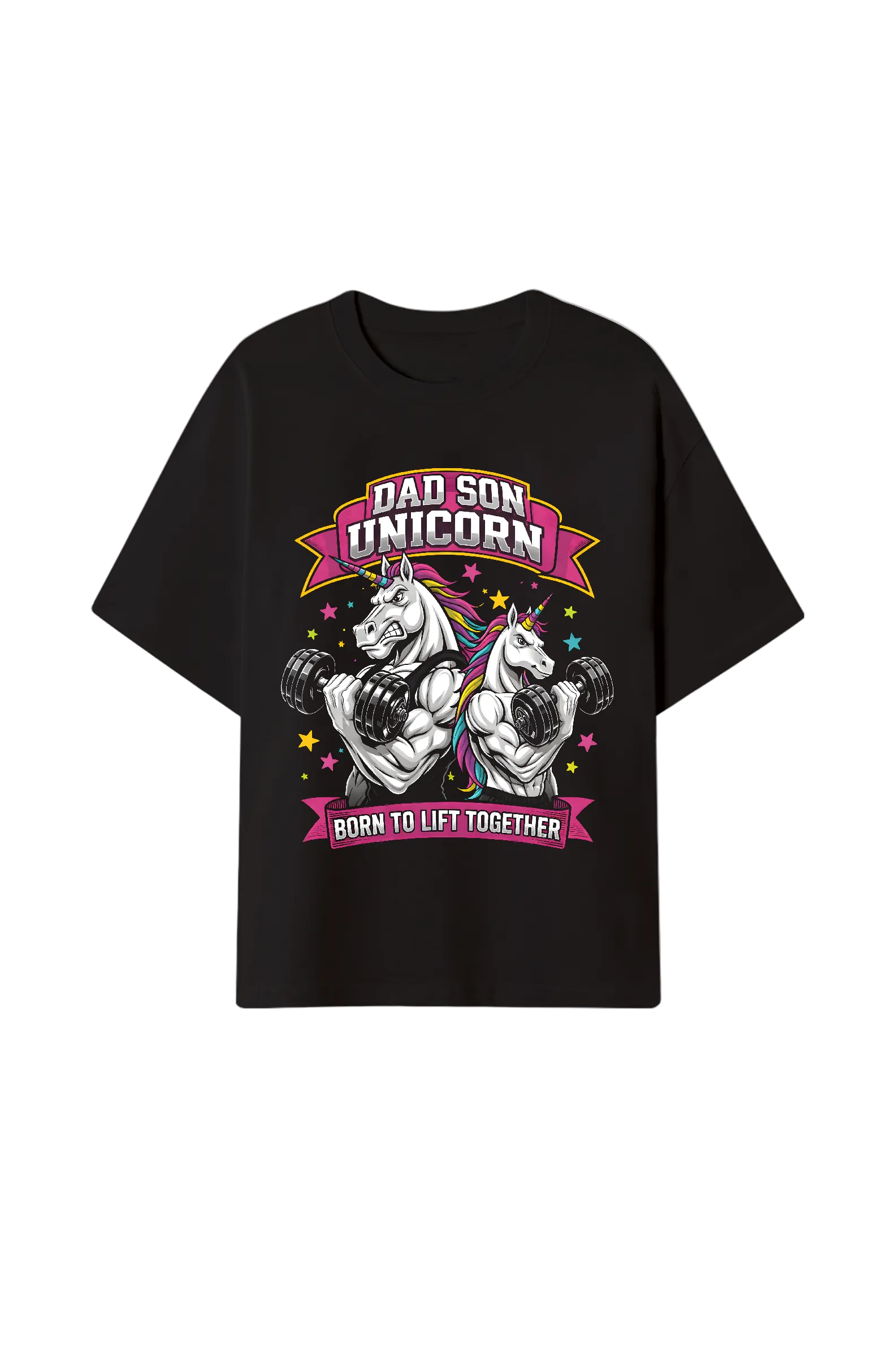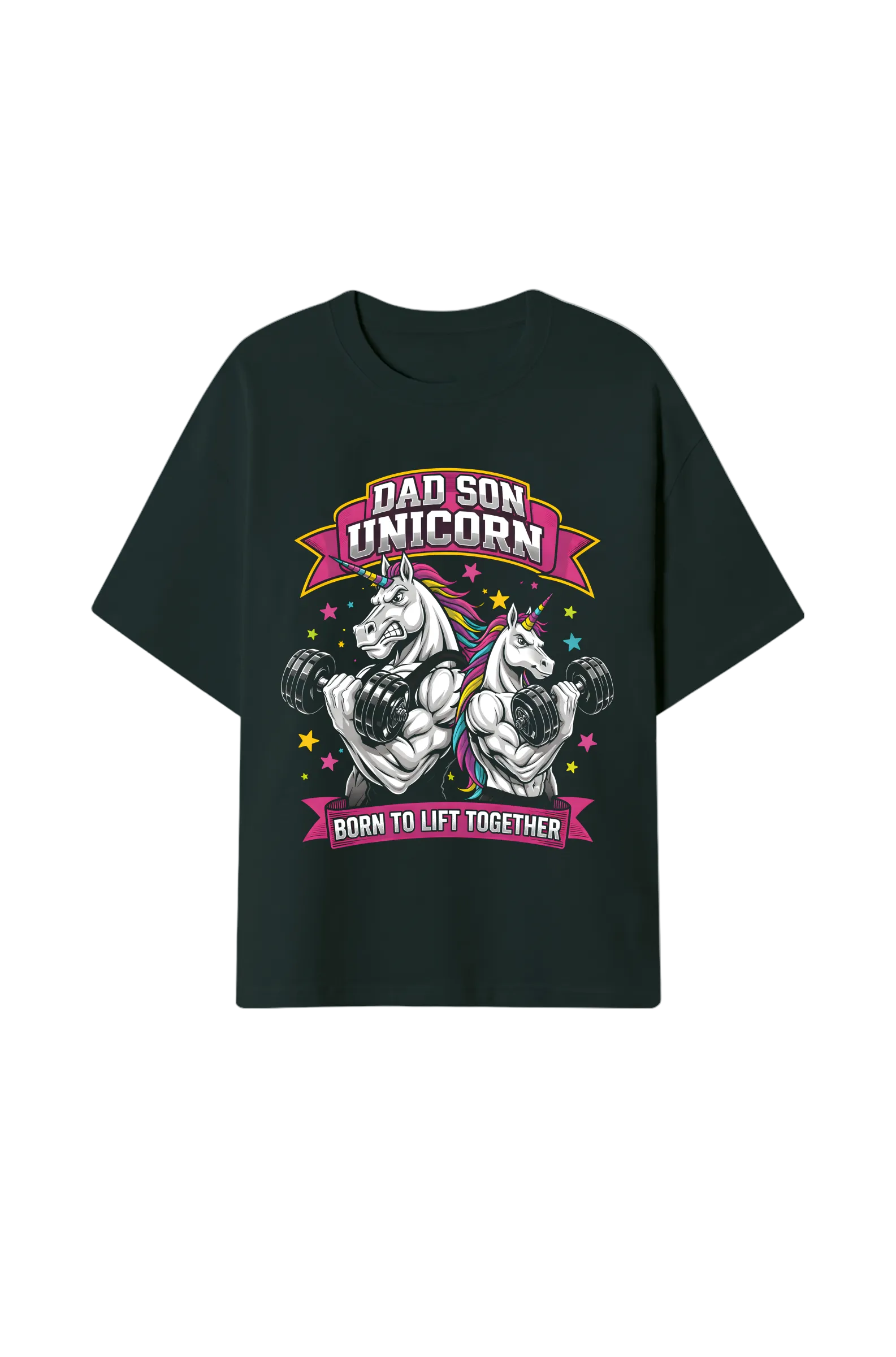 Pumpen mit Stil und Humor. Dieses Oversize Shirt zeigt, dass Training und Spaß zusammengehören. Perfekt für Vater und Sohn im Gym.