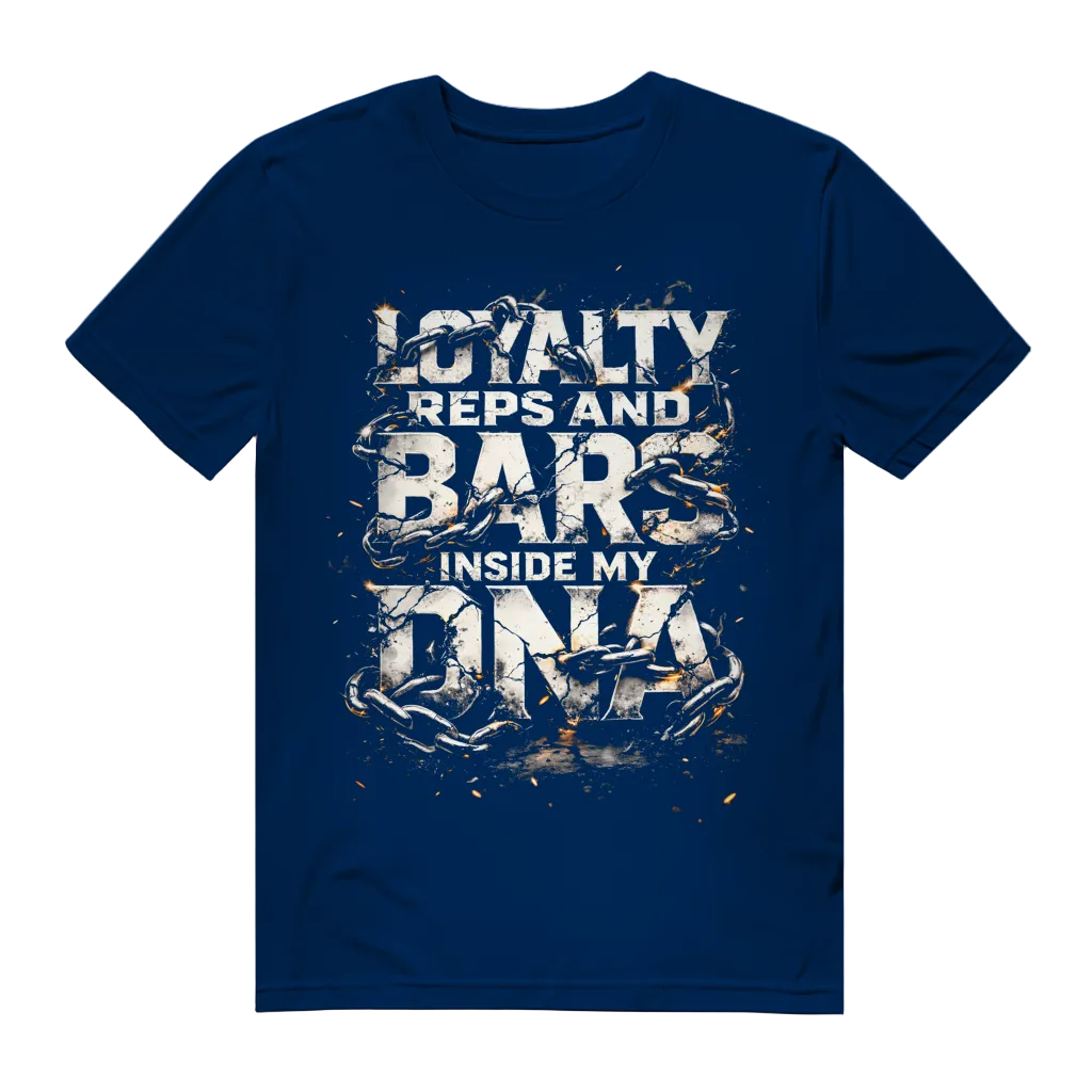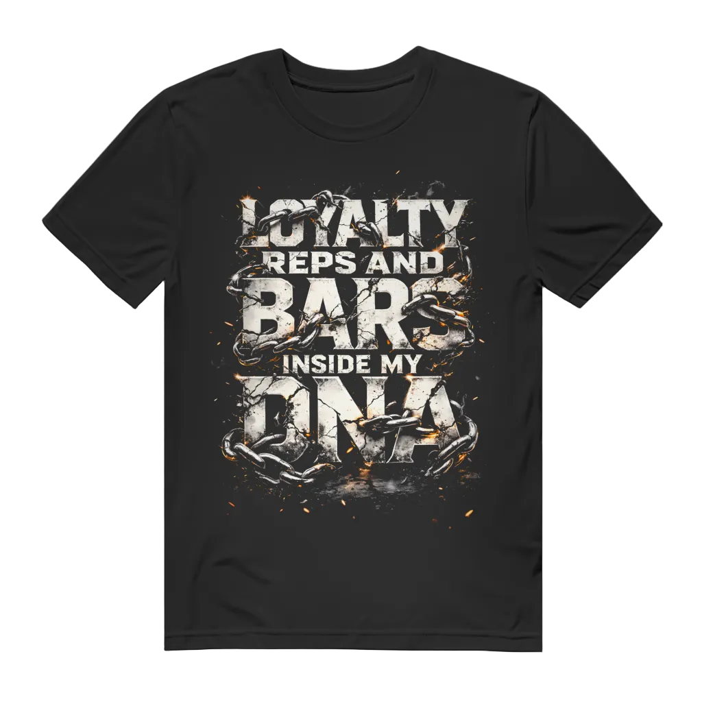 „Loyalty, Reps and Bars inside my DNA“ steht für Disziplin, Hip-Hop-Energie und kompromisslosen Trainingsfokus. Das markante Ketten-Design symbolisiert Stärke und Zusammenhalt. Dieses Premium Shirt kombiniert klare Gym-Attitude mit urbanem Rap-Vibe – perfekt für Training, Alltag und echte Mentalität.