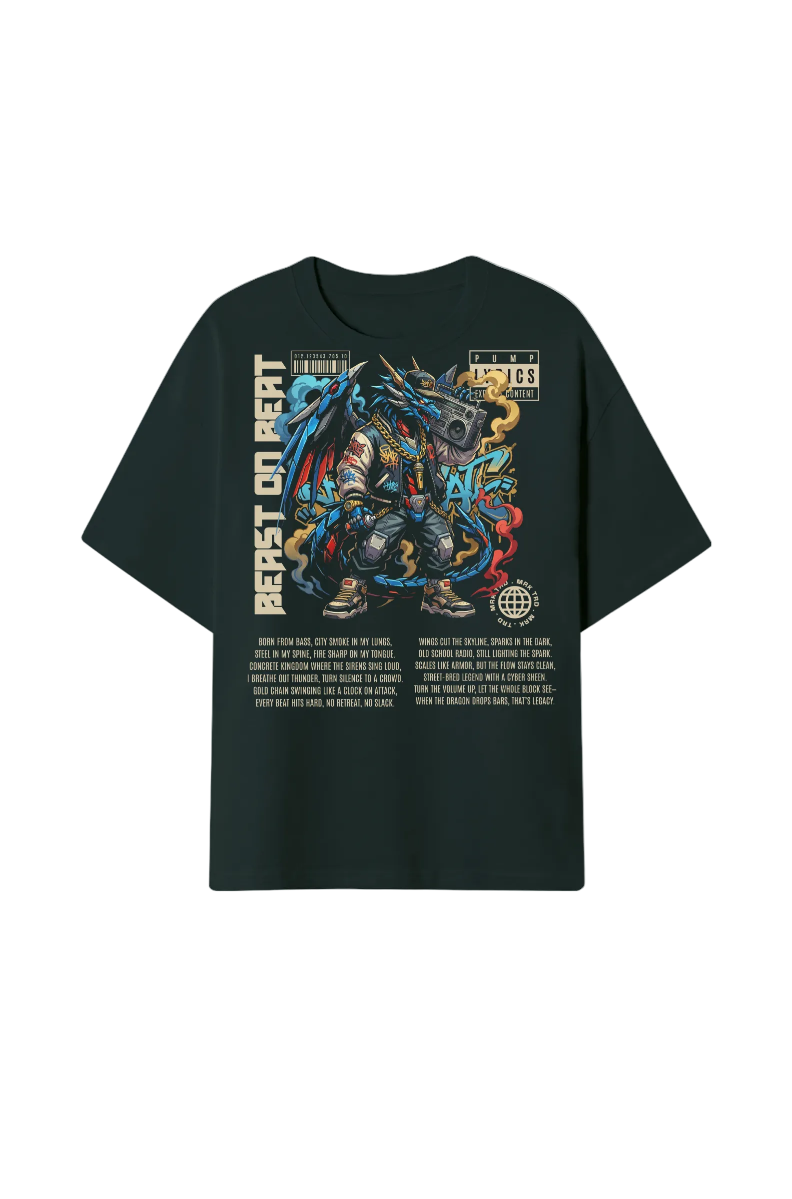 Beast on Beat – Oldschool Rap Drache Oversize Shirt