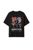 Dieses Oversize Shirt steht für echte Rap-Mentalität: Träume kommen und gehen, doch Gewohnheiten bleiben. Das Motiv verbindet Straße, Feuer, Blitz und Hustle zu einem Statement über Disziplin und Fokus. Für Alltag, Studio und City.