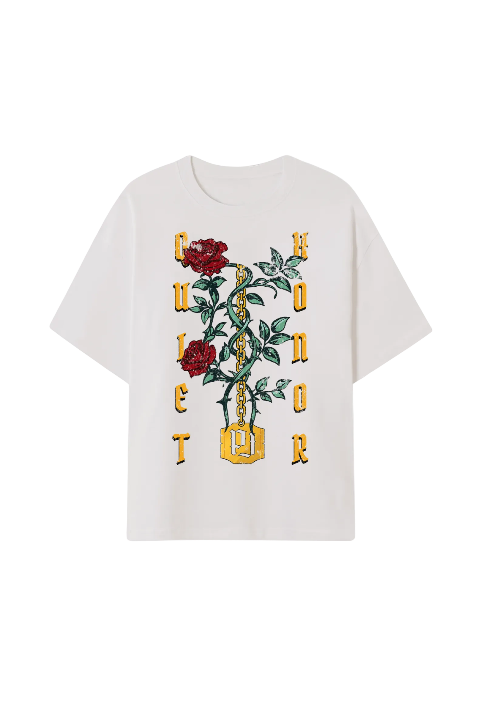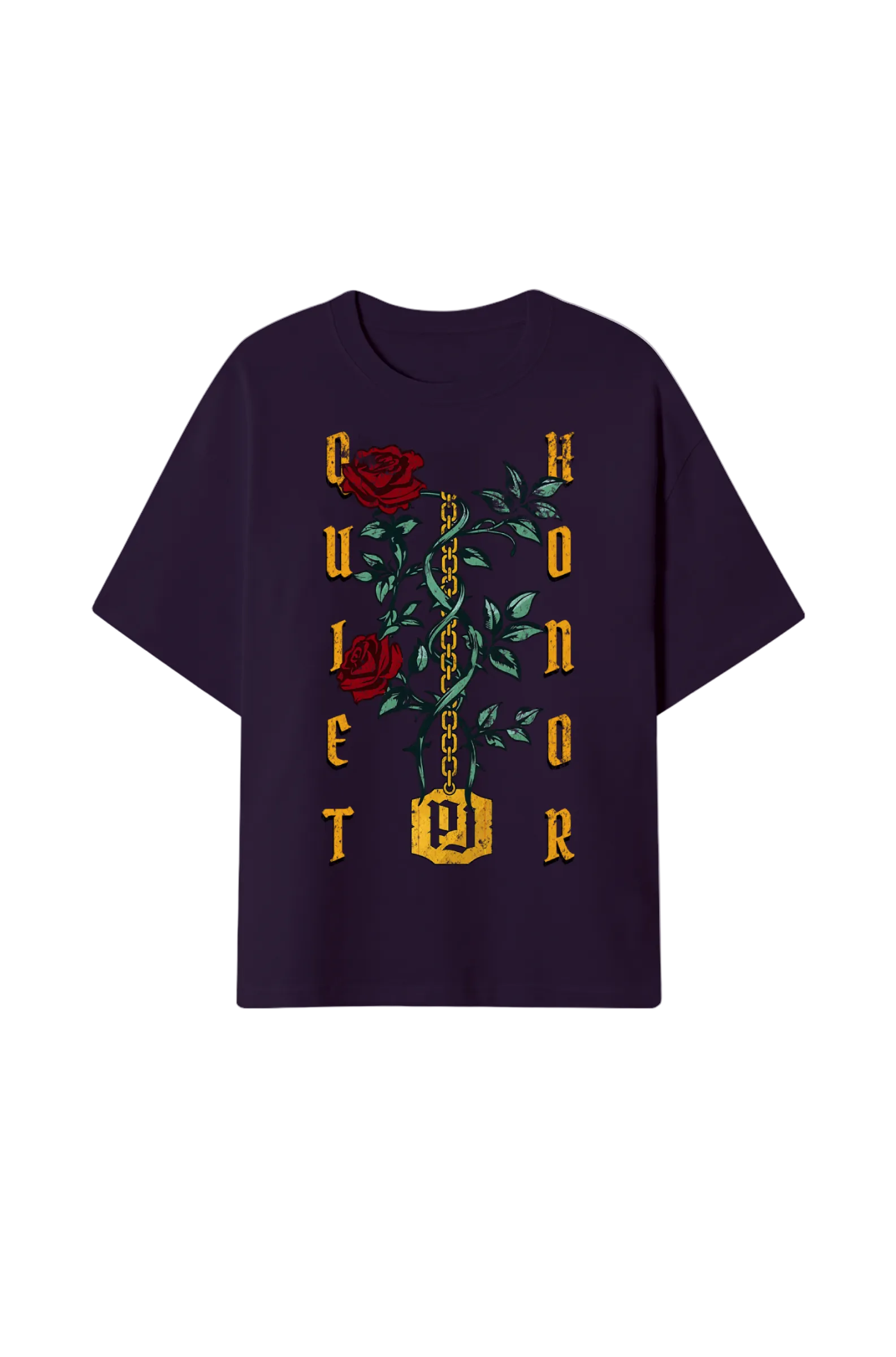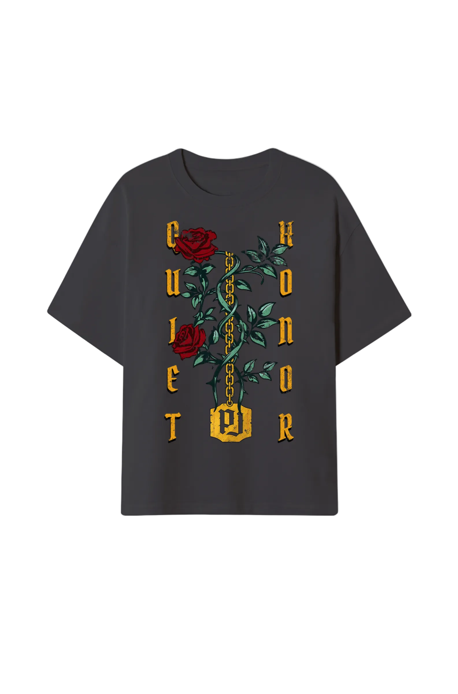 Dieses Oversize Shirt steht für innere Stärke und Selbstbehauptung. Symbolik aus Rose und Kette trifft auf klare Haltung und ruhige Attitude. Ein Design für alle, die Ehre tragen, statt aufzugeben – auf der Straße und im Alltag.